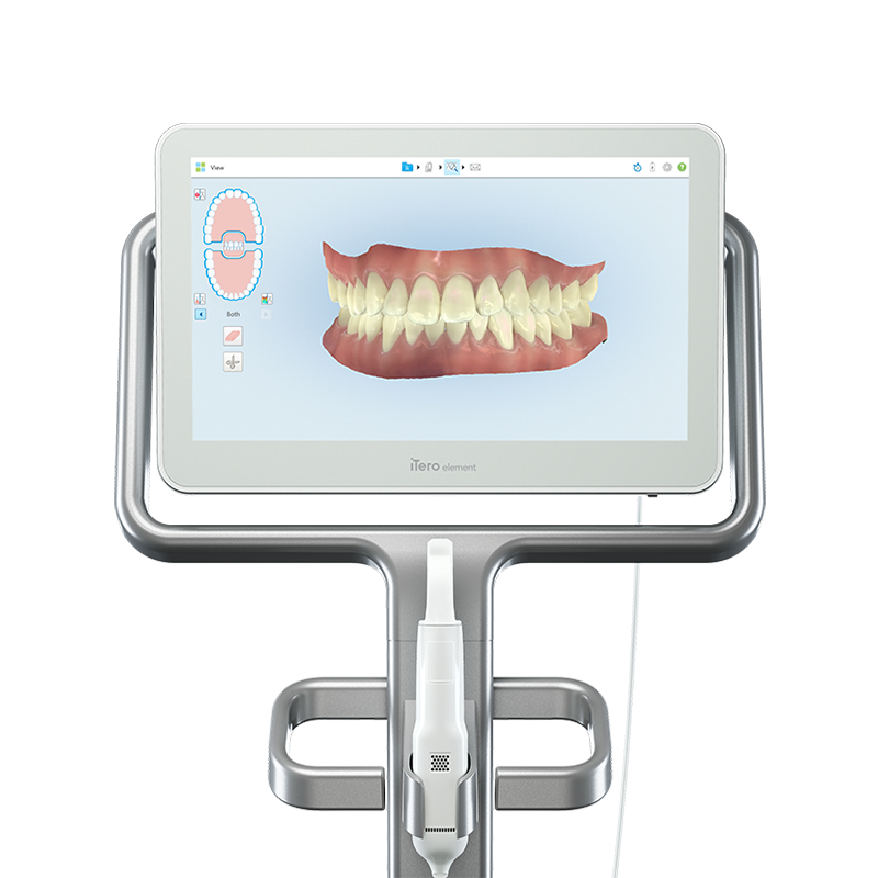 iTeroは、口の中の型取りが不要となり、PC上ですぐに3Dのデータが再現され、その場で患者様に現状の歯並びをお見せすることができます。また、歯並びをキレイにした後、どのようになるのかシミュレーションすることもできます。
