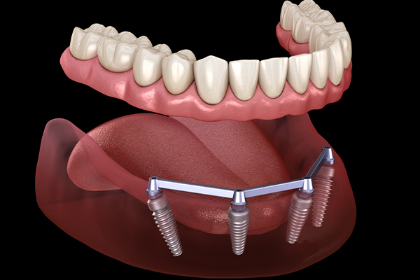 片側の顎に最少本数4本のインプラントを埋め込み、その上に全体的に咬めるような固定性の歯を装着できる治療法です。