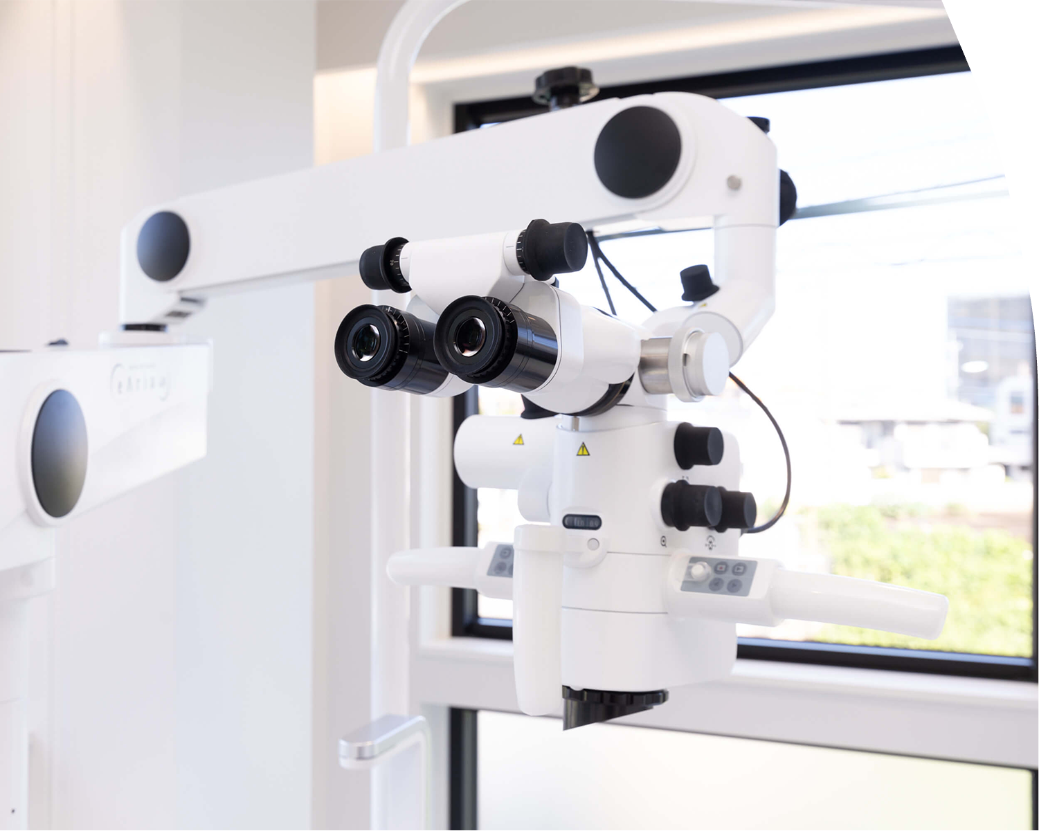 当院ではマイクロスコープを用いて根管治療を行います。これにより、肉眼では確認できない微細な部位まで精密に診察し、患者様により良い治療結果を提供しています。
