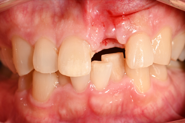 治療 リスク | 最終的な歯が入るまでは仮歯になります |