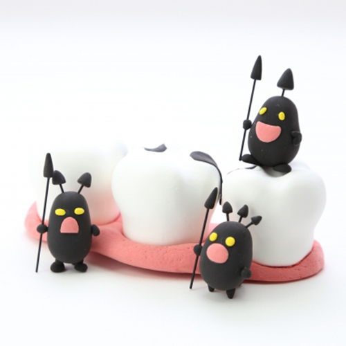 歯の表面に付いたプラーク(歯垢)の中にいるむし歯病原菌(ミュータンス菌など)が飲食物や口の中の糖を利用して「酸」を作ります。その酸によって歯の表面が少しずつ溶かされて穴を開けてしまう病気です。