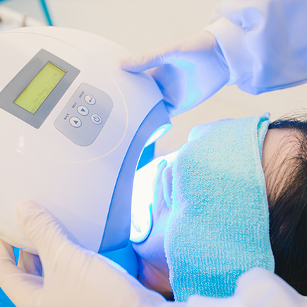 専用の薬剤を歯面に塗布し、特殊な光を照射して歯を白くしていきます。