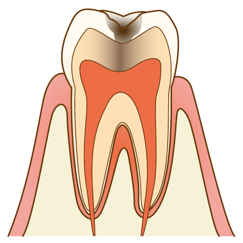 エナメル質の内側の象牙質にむし歯が達したものです。象牙質はエナメル質により軟らかい組織なので、むし歯の進みかたが速くなります。